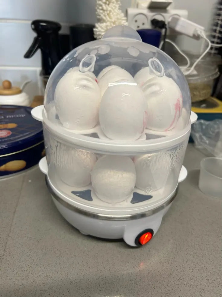 "OMG, this egg steamer is a lifesaver! Mornings were a total rush, but now I can make my breakfast in no time. Luv the double layers, I can do eggs and veggies simultaneously. Highly recommend!👍😊"